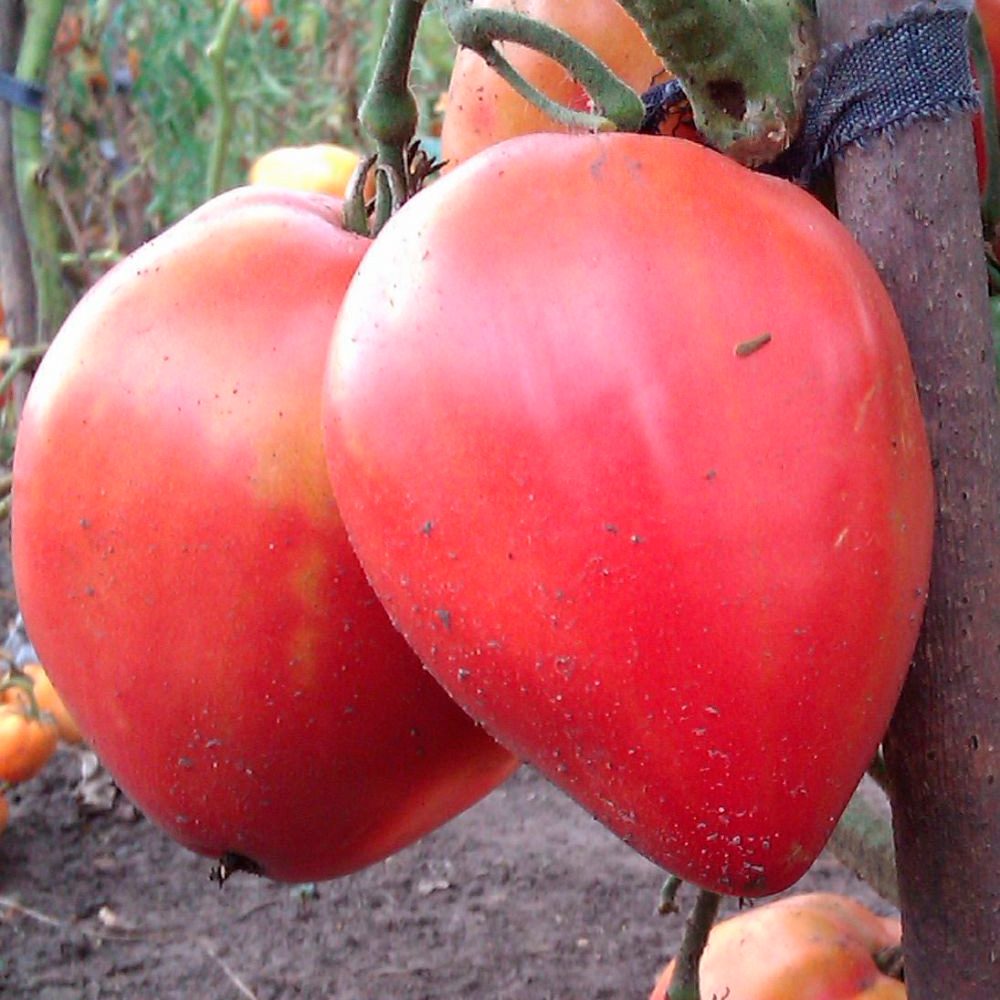 Плоды сердцевидной формы с носиком, очень гладкие, блестящие, малинового цвета, массой до 350 г, сахаристые, сладкие. Период плодоношения длительный, общая урожайность до 17 кг с 1 кв. м.