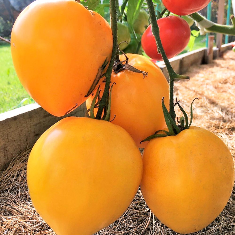 Селекция Агрофирмы «Семена Алтая». Среднеспелый индетерминантный сорт для открытого и защищенного грунта. Растение высотой до 2 м при тепличном выращивании. Плоды желтые, сердцевидной формы, крупные, мясистые, массой до 700-900 г. Мякоть сладкая, на разломе сахаристая. На одной кисти формируется до 7 плодов. Используется в свежем виде и для заготовок на зиму.